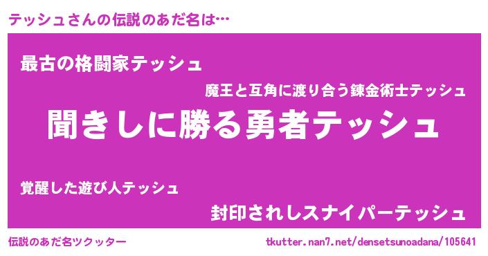 | ヒーロー風カッコイイあだ名 | 『ネオテッシュ』『ウルトラテッシュマン』 |