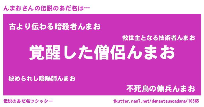 | 男性向けラノベタイトル風あだ名 | 『んまおの嫁は女の子じゃないと思った?』 |