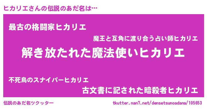 | ポケモン風あだ名 | 『ヒヒカリエ』『ヒーカイ』 |
