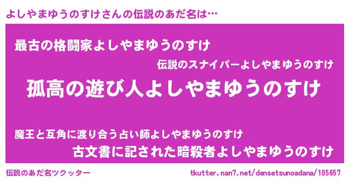 | 女子向けラノベタイトル風あだ名 | 『よしやまゆうのすけは平凡を望む』 |