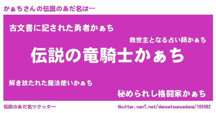 | ヒーロー風カッコイイあだ名 | 『スーパーカァチ』『仮面カァダー』 |