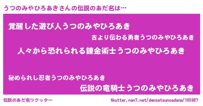 | ポケモン風あだ名 | 『ウックウザ』『ヒウツノミヤヒロアキ』 |