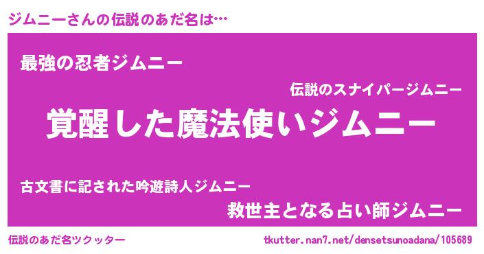 | ヒーロー風カッコイイあだ名 | 『炎刃騎士ジム』『サイバー戦士ジムニー』 |