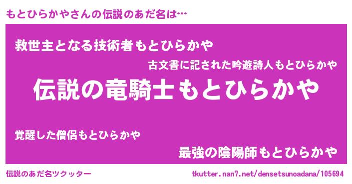 | 胡散臭い通販商品みたいなあだ名 | 『必ず成功するブレスレット…その名も「もとひらかや」』 |