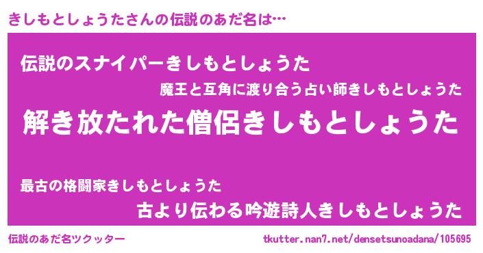 | ヒーロー風カッコイイあだ名 | 『魔戒騎士キシ』『ネオキシモトショウタ』 |