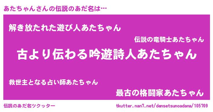 | 意味不明あだ名 | 『自称あたちゃん』『永久保存あたちゃん』 |