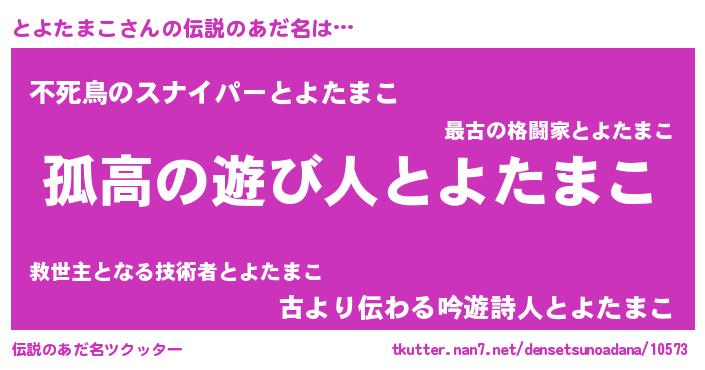 | 意味不明あだ名 | 『とにかく怪しいとよたまこ』 |