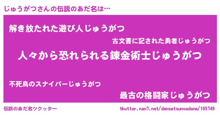 | ポケモン風あだ名 | 『ジュキング』『ジックウザ』 |