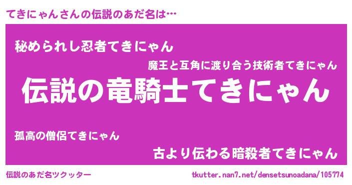 | 胡散臭い通販商品みたいなあだ名 | 『必ず成功するブレスレット…その名も「てきにゃん」』 |