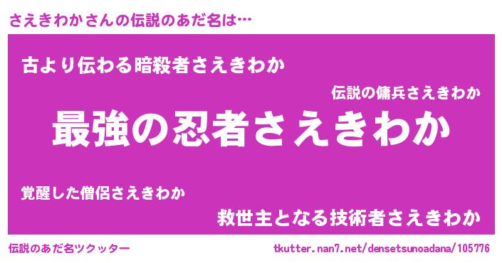 | ファンタジー風あだ名 | 『エターナルサエキワカー』『サエフェル』 |