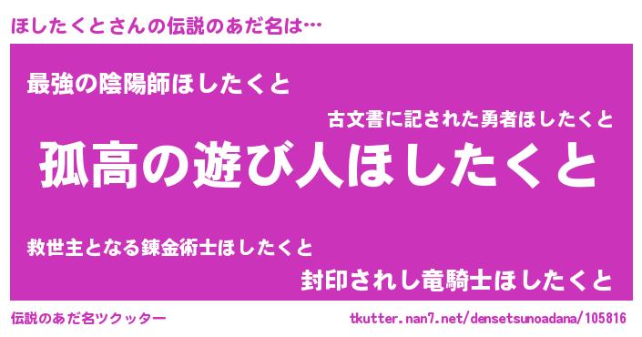 | 女子向けラノベタイトル風あだ名 | 『ほしたくとは平凡を望む』 |