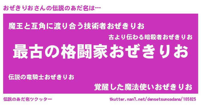 | ヒーロー風カッコイイあだ名 | 『仮面オゼダー』『慈愛の使者おぜきりお』 |