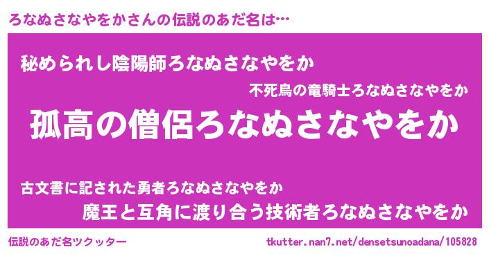 | 男性向けラノベタイトル風あだ名 | 『ダンジョンにろなぬさなやをかを求めるのは間違っているだろうか』 |