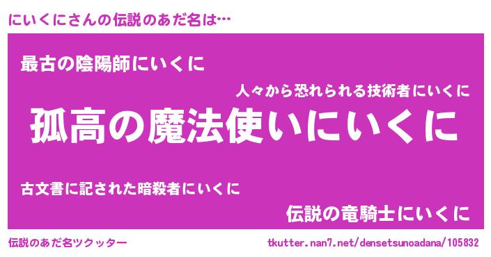 | 意味不明あだ名 | 『とにかく怪しいにいくに』 |