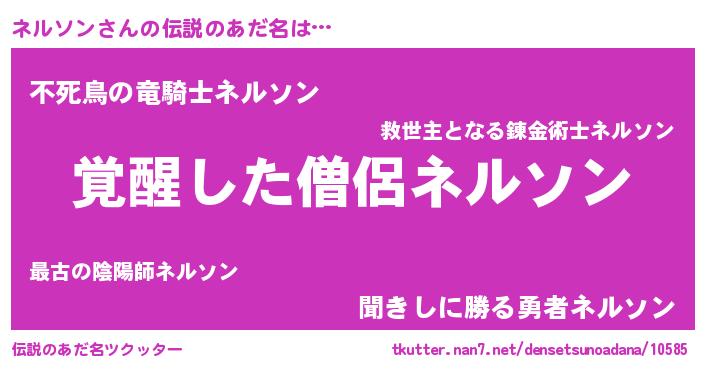| 男性向けラノベタイトル風あだ名 | 『ネルソンの嫁は女の子じゃないと思った?』 |