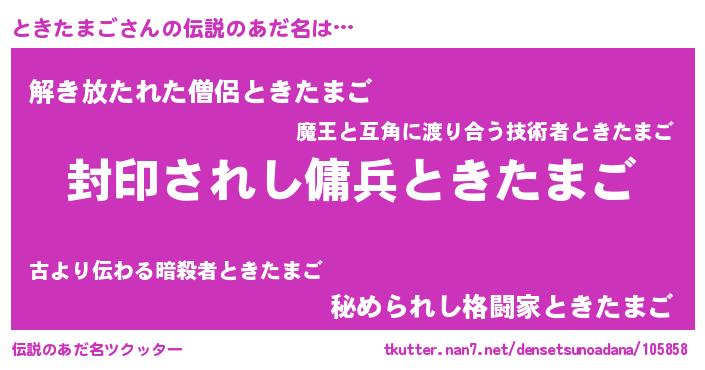 | ヒーロー風カッコイイあだ名 | 『スーパートキタマゴ』『魔戒騎士トキ』 |