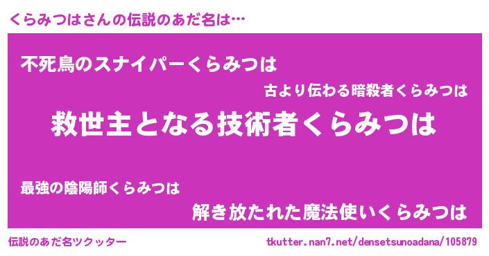 | 意味不明あだ名 | 『自称くらみつは』『ペロリンくらみつは』 |