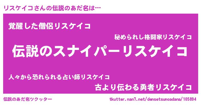 | ヒーロー風カッコイイあだ名 | 『スーパーリスケイコ』『銀牙騎士リス』 |