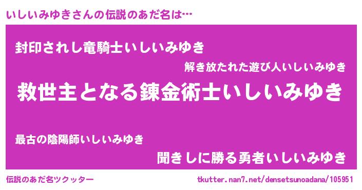 | 男性向けラノベタイトル風あだ名 | 『ノーゲーム・ノーイシイミユキ』 |