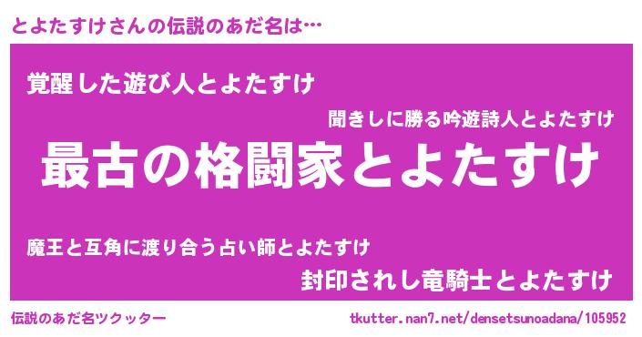 | ヘコむあだ名 | 『なまこ酢』『とよを』『とよもー』 |