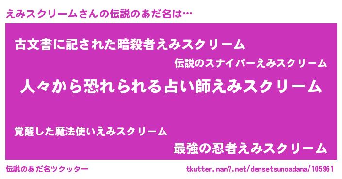 | 男性向けラノベタイトル風あだ名 | 『エミスクリームスレイヤー』 |
