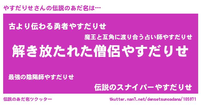 | 欧米人風あだ名 | 『ウサインやすだりせ』 |