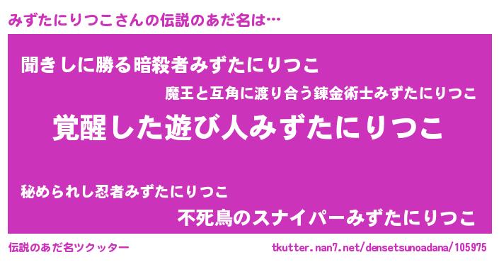| 意味不明あだ名 | 『とにかく怪しいみずたにりつこ』 |
