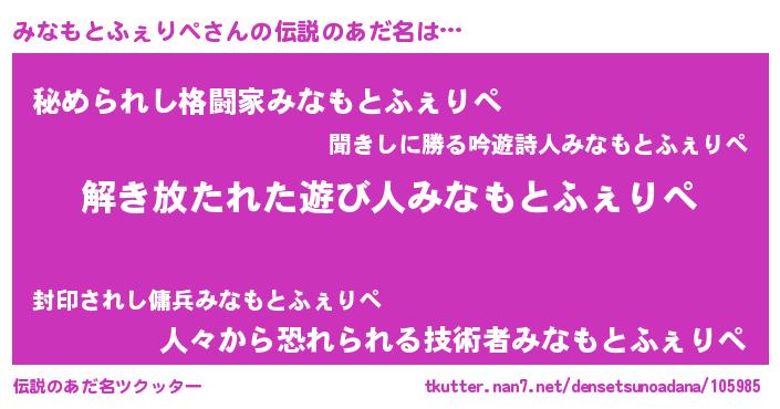 みなもとふぇりぺさんの伝説のあだ名をツクッター!
