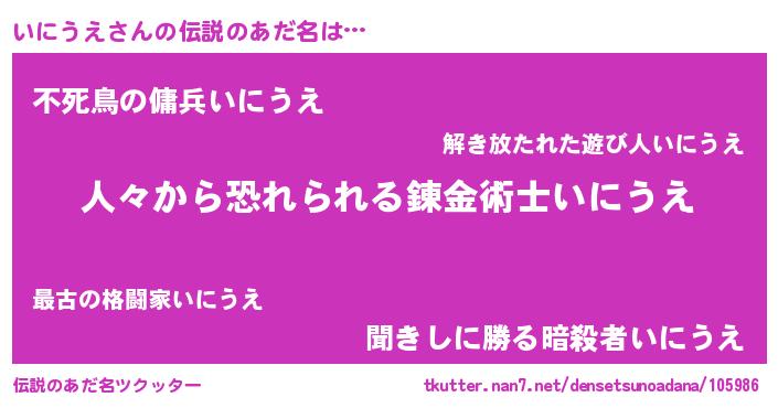 | ヘコむあだ名 | 『いにもー』『いにうえ(爆)』 |