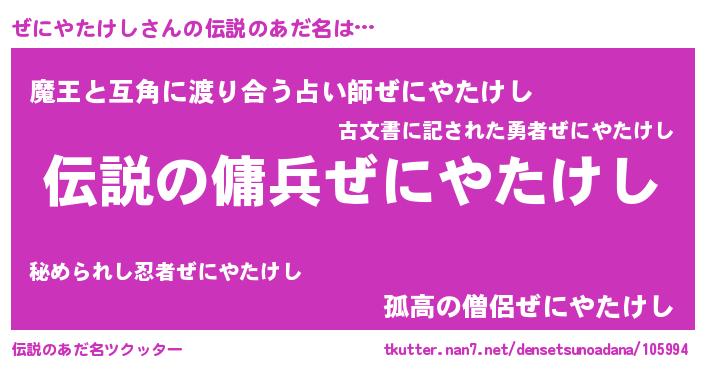 | 胡散臭い通販商品みたいなあだ名 | 『必ず成功する水晶球…その名も「ぜにやたけし」』 |