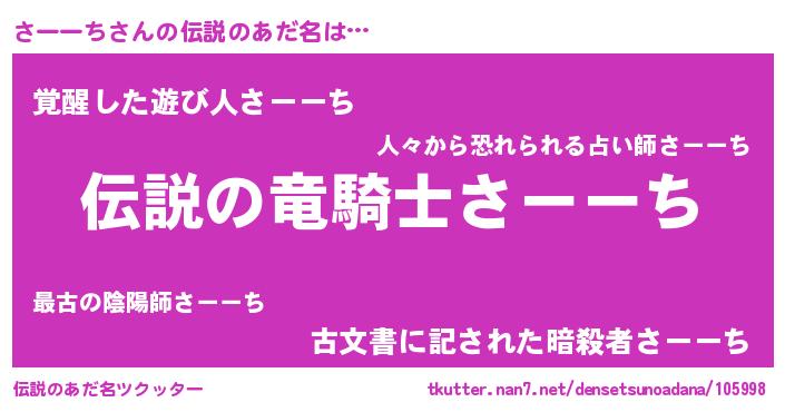 | 胡散臭い通販商品みたいなあだ名 | 『必ず成功するブレスレット…その名も「さーーち」』 |