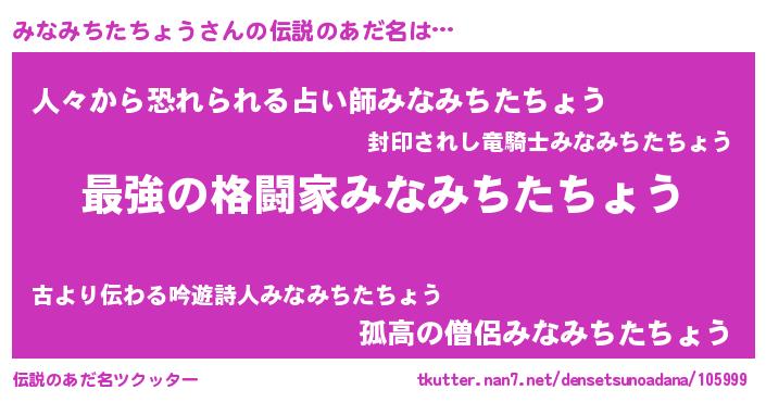 | 意味不明あだ名 | 『みなみちたちょうフォーエバー』 |