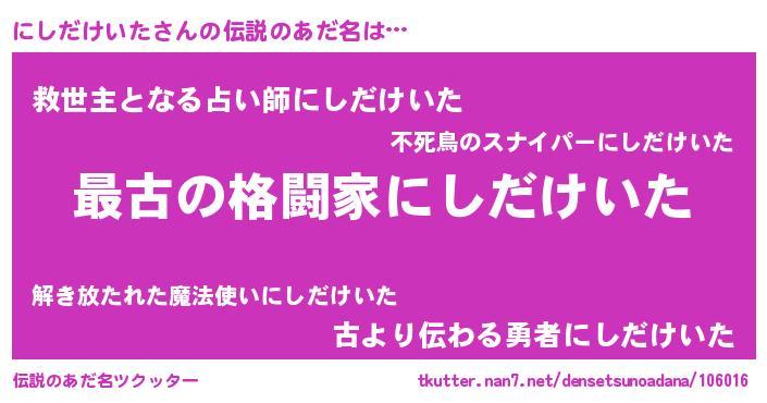 | 意味不明あだ名 | 『自称にしだけいた』 |