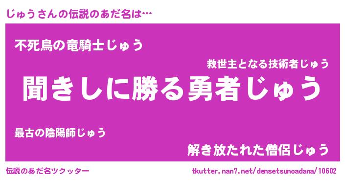 | ヒーロー風カッコイイあだ名 | 『超時空戦士ジュウ』『ネオジュウ』 |
