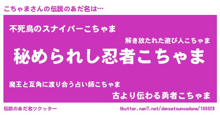 | 意味不明あだ名 | 『自称こちゃま』『こちゃまフォーエバー』 |