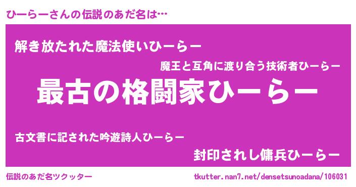 | ヒーロー風カッコイイあだ名 | 『ウルトラひーらーマン』『仮面ヒーダー』 |
