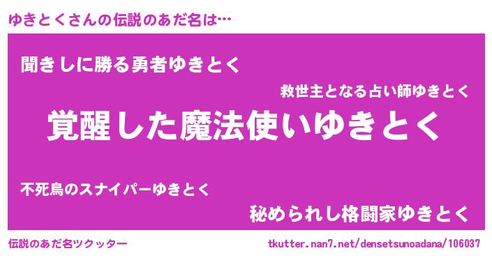 | 男性向けラノベタイトル風あだ名 | 『ゆきとく~年齢イコール彼女いない歴の魔法使い~』 |