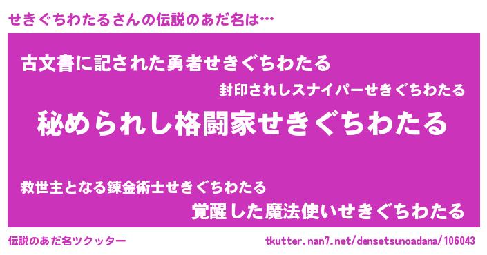 | 意味不明あだ名 | 『せきぐちわたるフォーエバー』 |