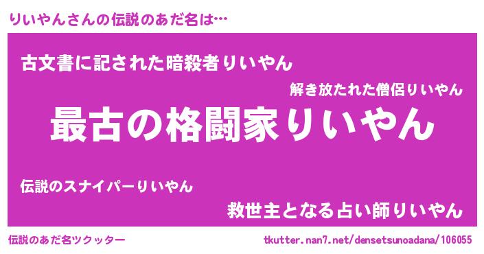 | ヒーロー風カッコイイあだ名 | 『ウルトラりいやんマン』『ネオリイヤン』 |
