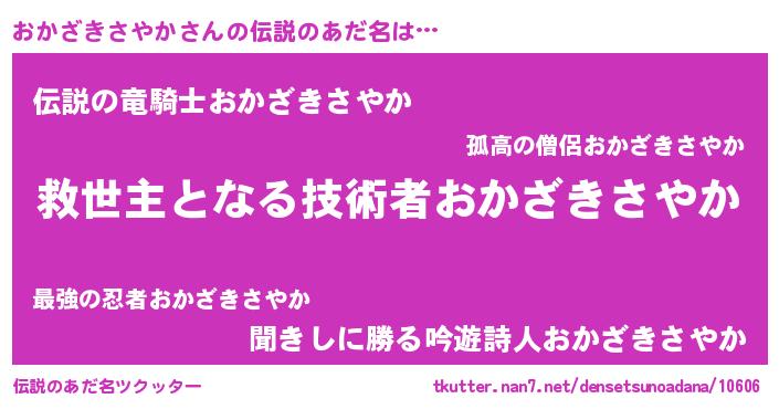 | 男性向けラノベタイトル風あだ名 | 『ノーゲーム・ノーオカザキサヤカ』 |