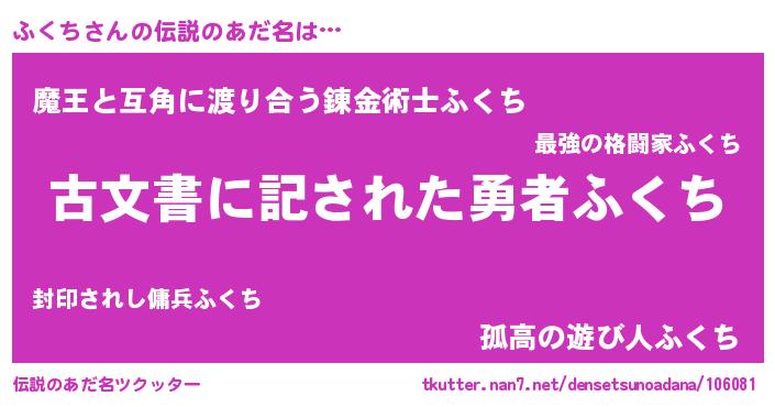| 意味不明あだ名 | 『永久保存ふくち』『自称ふくち』 |
