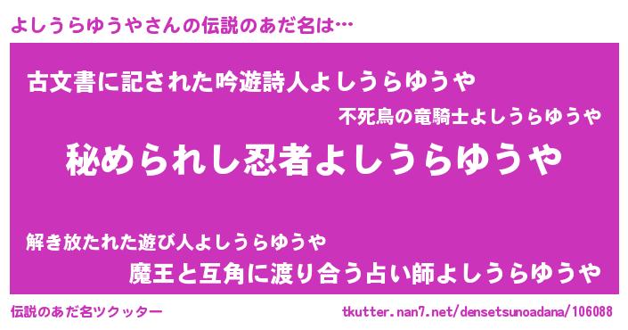 | 意味不明あだ名 | 『よしうらゆうやフォーエバー』 |