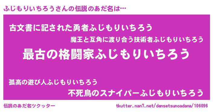 | 男性向けラノベタイトル風あだ名 | 『転生したらふじもりいちろうだった件』 |