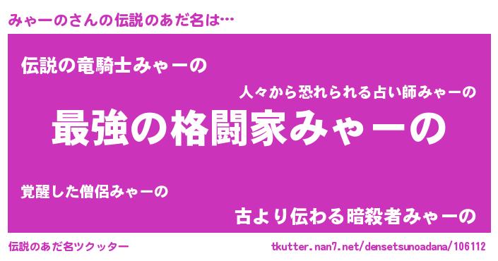 | 意味不明あだ名 | 『みゃーのフォーエバー』 |