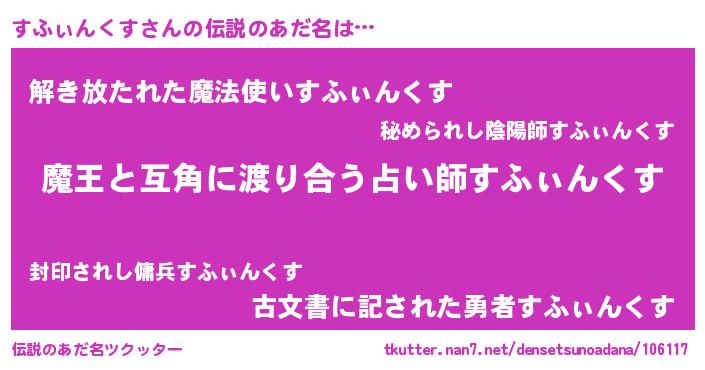 | 意味不明あだ名 | 『自称すふぃんくす』 |