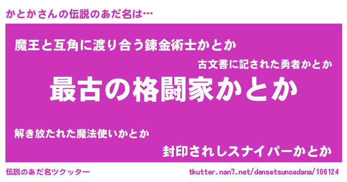 | 男性向けラノベタイトル風あだ名 | 『かとかに滅ぼされるだけの簡単なお仕事です』 |