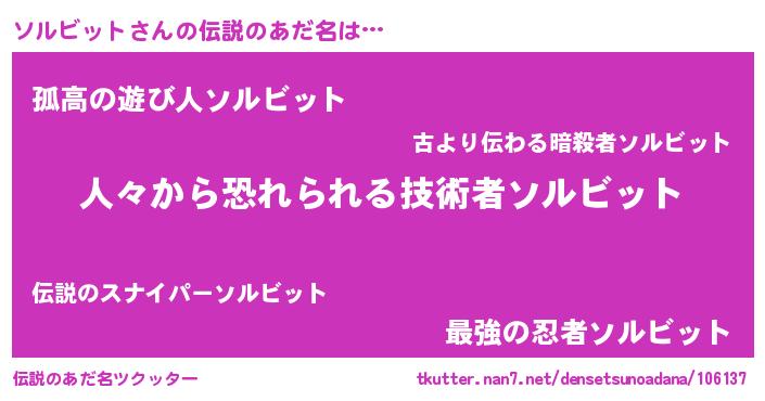 | 男性向けラノベタイトル風あだ名 | 『ソルビットスレイヤー』 |