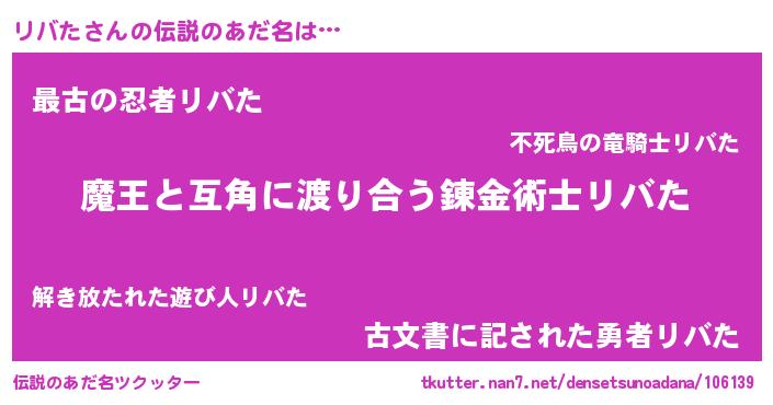 | 意味不明あだ名 | 『住所不定無職リバた(93歳)』 |