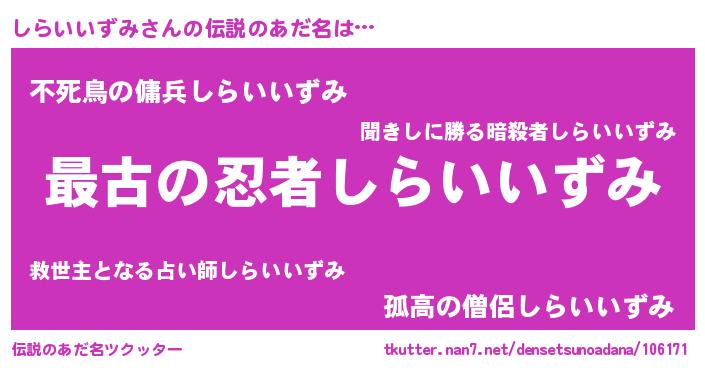 | 意味不明あだ名 | 『住所不定無職しらいいずみ(65歳)』 |