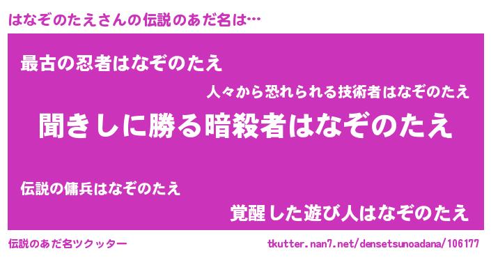 | 男性向けラノベタイトル風あだ名 | 『ハナゾノタエスレイヤー』 |